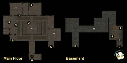 Quando você chegar a esta casa, você encontrará a Vigília da Cidade acampada do lado de fora. Logo você descobrirá que ladrões invadiram a casa, e que dois deles estão fazendo Marshal Cormick de refém do lado de fora. Se você avançar contra os ladrões, eles matarão Cormick com uma varinha de mísseis mágicos. Cormick derrubará uma Old Harvest Cloak quando morrer, enquanto os ladrões não derrubarão nada. Se você conversar com os ladrões, você poderá convencê-los a sair da casa pacificamente (que renderá 500 pontos de experiência), ou enganá-los dizendo que eles receberão um perdão. Independentemente da forma que você resolver a situação, você não verá Cormick novamente. Dentro da casa, você só encontrará os criados de Aldanon (#4, #6). Mas quando você alcançar Harcourt (#6), ele lhe dirá que um nobre chamado Tavorick pode estar com um Silver Shard em sua posse, e recomendará para você visitá-lo o mais rápido possível. Após informar Lorde Nasher sobre o que você descobriu (o que lhe renderá 2000 pontos de experiência), você terá exatamente que fazer isso. Você encontrará Lorde Nasher no Castelo Never, enquanto Tavorick estará dentro de sua propriedade no Blacklake District. 1) Ponto Inicial. 2) Estante de Livros: Nesta estante você poderá pegar o livro de receitas On the Crafting of Mystical Garb for All Climes. 3) Portas Trancadas: Você não será capaz de abrir estas portas. 4) Mordomo: Você encontrará o mordomo encurralado por três bandidos. Você ganhará 500 pontos de experiência se conseguir salvá-lo. 5) Cozinha: Um dos bandidos na cozinha derrubará o kukri Ladymist Talon quando morrer. 6) Scab: Scab é o bandido líder. Quando você se aproximar dele, ele ficará hostil e ordenará para que seus homens matem os reféns que sobraram: Harcourt, a faxineira, e o cozinheiro. Você receberá 400 pontos de experiência se conseguir salvar todos eles, e Harcourt lhe dirá algumas coisas interessantes: Aldanon fora o primeiro a ser retirado da casa por um grupo desconhecido de seqüestradores, e que os nobres que foram mortos no Blacklake District possuíam um Silver Shard. Dirá também que um nobre chamado Tavorick provavelmente está em posse de um Shard agora. No cadáver de Scab você encontrará um Ring of Protection +2 e The Book of Fire. 7) Baús: Dentro dos baús você encontrará o falchion Decision, além de um Canary Diamond e um Blue Diamond.