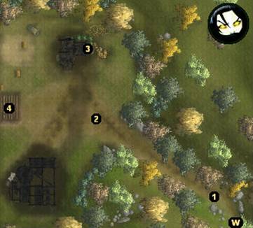 Nota sobre a área: Quando você contar a Sir Nevalle que a Crossroad Keep está pronta, ele e as forças de Neverwinter marcharão para Highcliff, mas a batalha será um fracasso. Lord Nasher ficará ferido, o King of shadows prevalecerá, e as forças reservas de Neverwinter partirão em retirada para a Crossroad Keep. Quando Nevalle retornar a fortaleza, ele te aconselhará a conversar com as pessoas de lá e ver o que pode ser feito para se prepararem ao cerco iminente. Se você ainda precisa construir algo na fortaleza, ou melhorar o equipamento dos teus soldados, agora é a hora (muito embora, até onde podemos dizer, isso não fará qualquer diferença). A maioria das pessoas na fortaleza dirão exatamente as mesmas coisas de antes, mas se você for até o interior da fortaleza, Aldanon lhe dirá que Ammon Jerro desapareceu, e Bishop se oferecerá para rastreá-lo. Se você aceitar a oferta, você será transportado para fazenda de Shandra. Se você não se importar com Ammon, você poderá dizer a Sir Nevalle que a Crossroad Keep está pronta para o cerco, e você pulará esta seção inteira. Se você aceitou procurar por Ammon, você chegará a fazenda de Shandra bem na hora de assistir a uma cutscene entre Ammon Jerro e Koraboros (#2). Koraboros decidirá que é o momento adequado para se vingar de Ammon, e ele não ficará abalado quando você aparecer e o último se unir a você. Quando a batalha começar, Koraboros será ajudado por dois diabos de chifre. Conforme a batalha progredi, ele invocará mais e mais demônios e diabos para ajudá-lo. Isso significa que se você não derrubá-lo logo, você se verá enfrentando um impossível exército de criaturas dos planos inferiores. Logo, deixe que ele os invoque. Concentre os teus atacantes corpo a corpo em Koraboros e atinja-o com Isaac’s Greater Missile Storm, Earthquakes, e quaisquer outros feitiços que pareçam apropriados. Ele deverá ceder rapidamente, e quando o fizer você encontrará um Staff of Magi em seu cadáver. Após a batalha, você iniciará um diálogo com Ammon Jerro. Se você puder convencê-lo a sentir remorso pelo que fez no passado, você receberá 1000 pontos de experiência, e Ammon descobrirá o Shandra’s Pendant escondido na grama. Se você não conseguir convencê-lo e nada, então ele simplesmente te mostrará a razão do por que ele retornou a fazenda: ele quebrará uma caixa para encontrar um baú escondido (#3), e pegará dele o Balafour’s Gnashing Rod. Se Ammon não quebrar a caixa, você mesmo poderá fazer isso e reclamar o cajado, de qualquer forma. Antes de sair da área, você também deveria dar uma olhada no espantalho (#4). Se a tua inteligência, perícias Spot ou Search forem altas o suficiente, então você encontrará dois baús sob ele. Se você examinar o espantalho (clicando com o botão direito sobre ele e depois “Examine”), o jogo checará se a tua inteligência é alta o suficiente (16 é suficiente). Se você descobrir os baús, dentro deles você encontrará a Sly Blade, um Ring of Regeneration, a armadura média Spellchain, e um Scarab of Greater Protection. 1) Ponto Inicial. 2) Ammon Jerro / Koraboros. 3) Baú Escondido. 4) Espantalho.